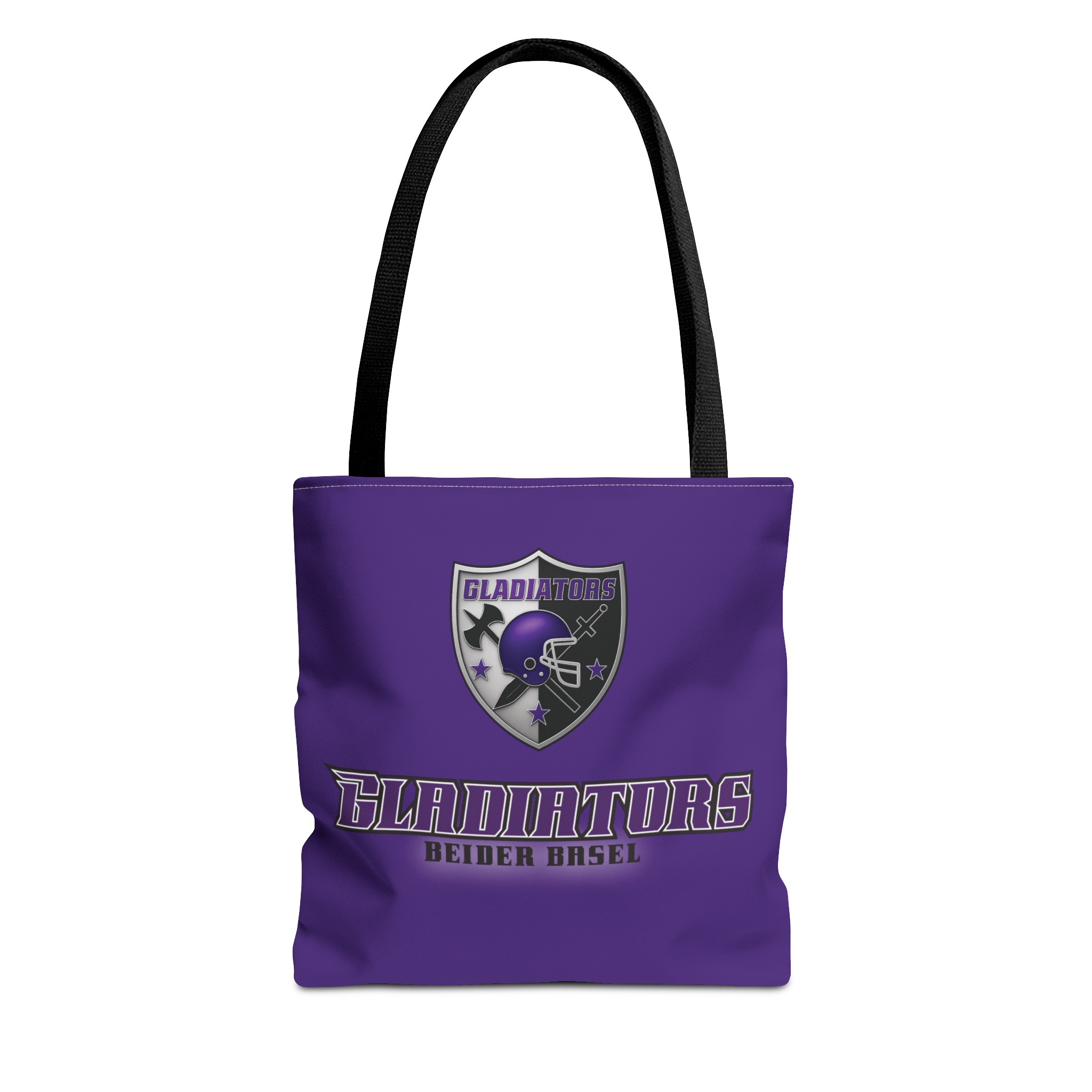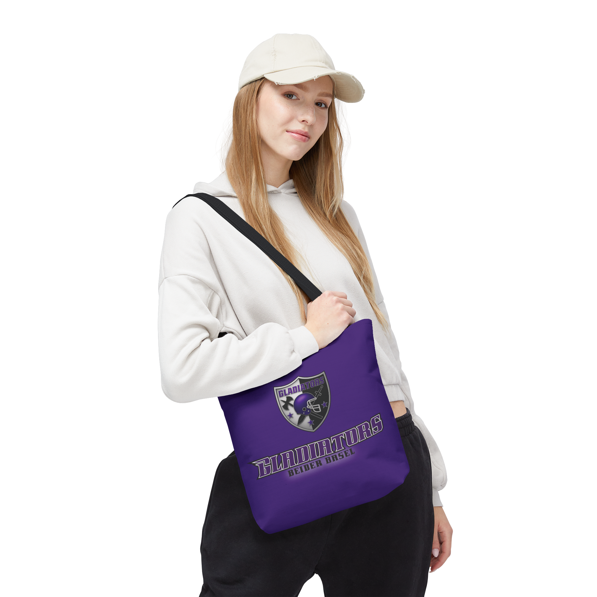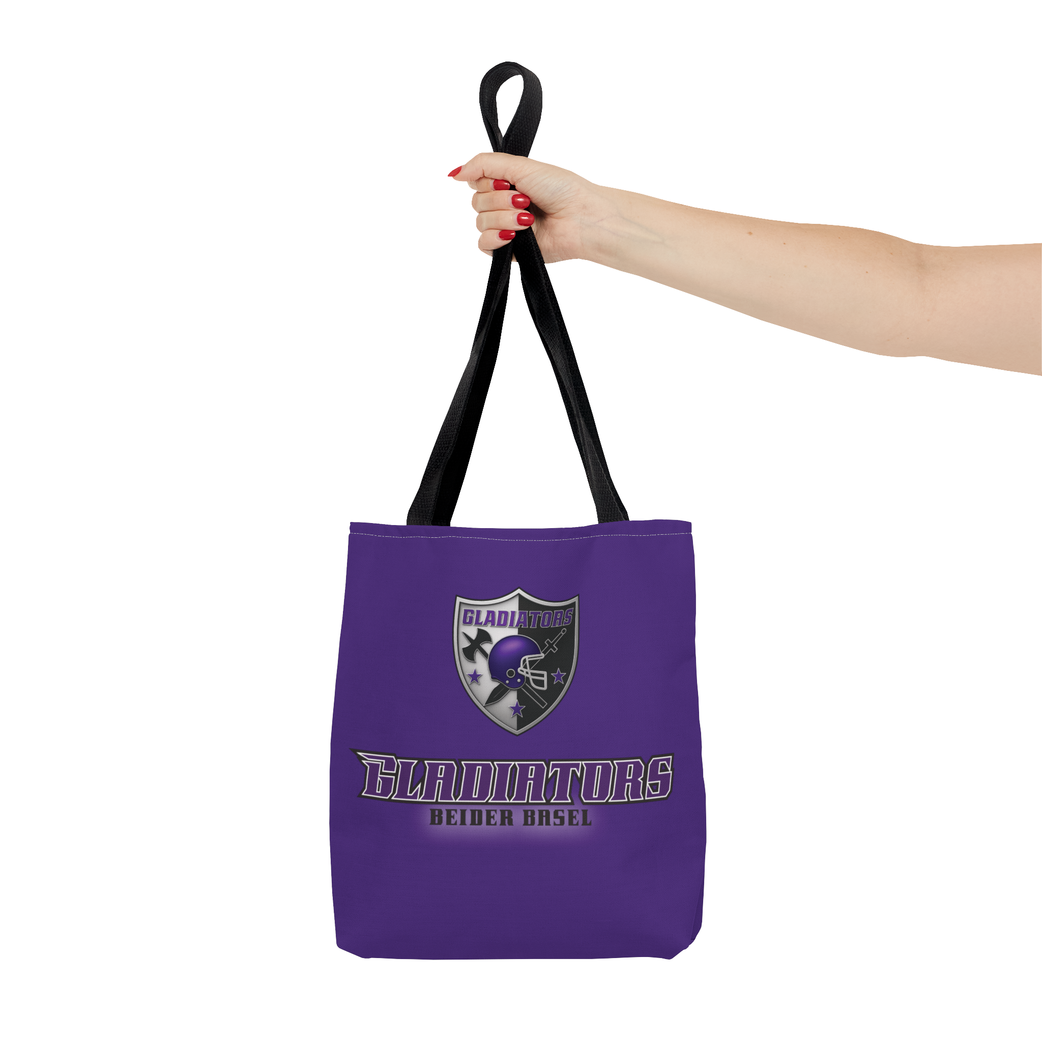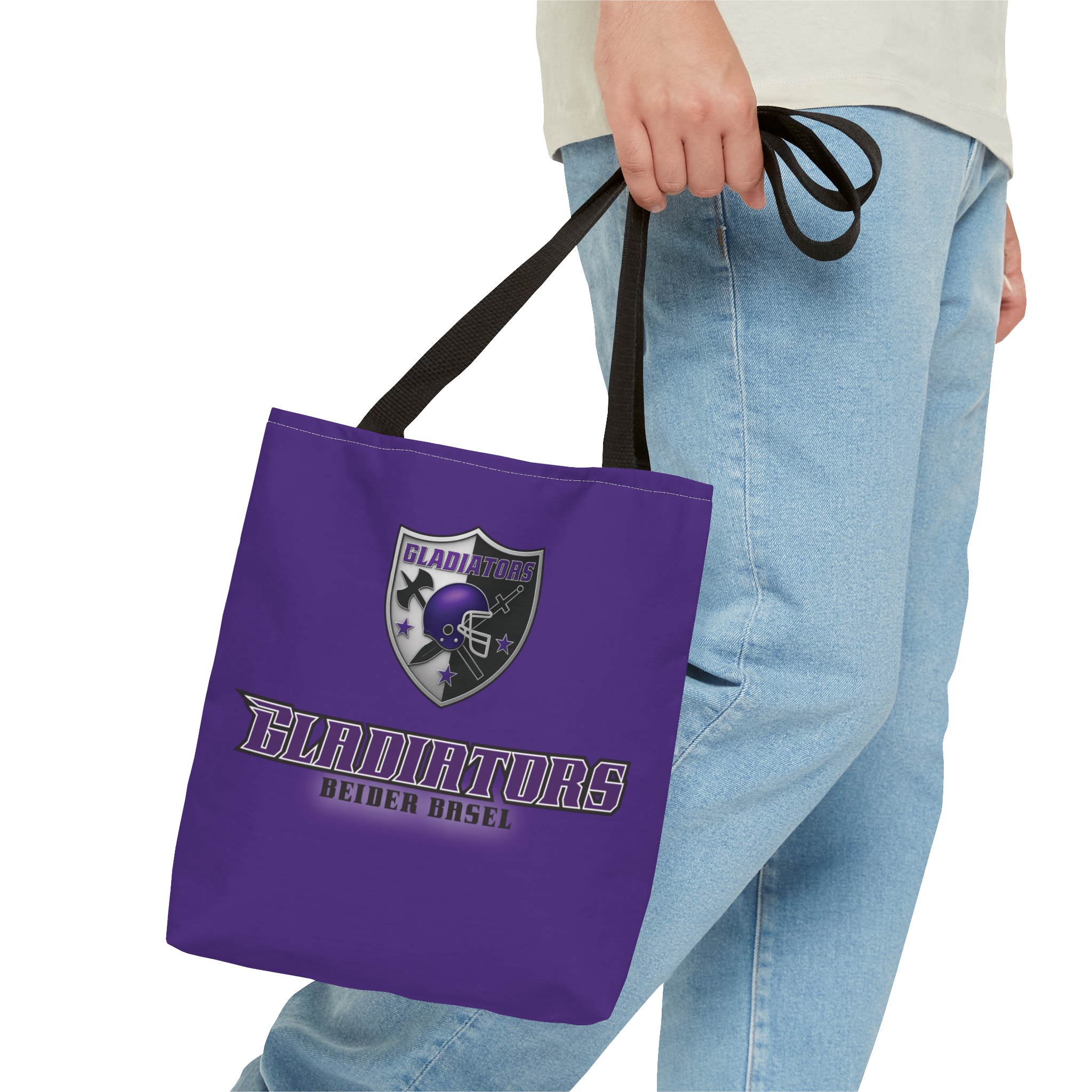 Zeige deinen Teamgeist überall mit dieser strapazierfähigen, vollflächig bedruckten Tragetasche. Das kräftige lila Canvas besticht durch ein auffälliges Wappen und den Schriftzug „Gladiators“ auf der Vorderseite, während die geräumigen, eckigen Falten und die verstärkten Nähte an den Griffen deine wichtigsten Dinge sicher verstauen – Bücher, Ausrüstung oder Snacks für den Spieltag. Der Stoff behält seine Form und trocknet schnell, und die glatten schwarzen Innennähte sorgen für einen sauberen, hochwertigen Look, der dem täglichen Gebrauch standhält. Trage sie zum Training, zu Tailgate-Partys oder in der Stadt und lass das Emblem für dich sprechen.